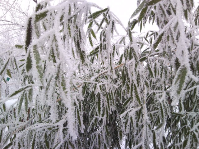 Kezdéskor a bambuszon nem semmi zúzmarát találtam: