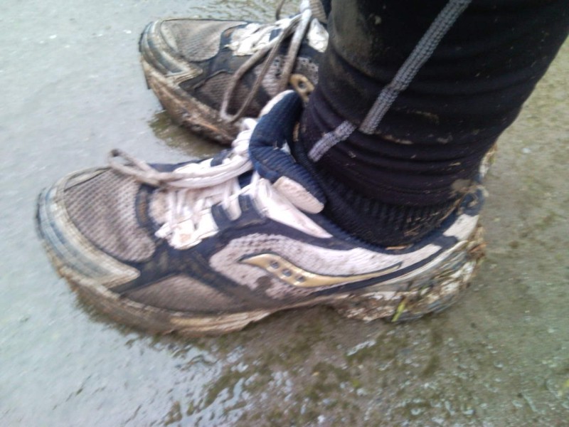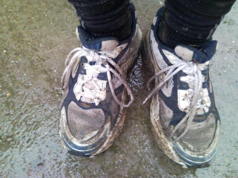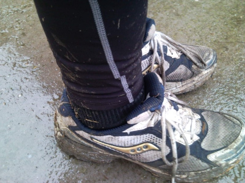 A következő 10km az nem semmi volt. A talaj felső fél centis rétege felengedett és sárdagasztás volt ezerrel. Tetszett a dolog, még a fülem töve is saras volt. Próbáltam a füves részeken "száguldani" valamint a gát oldalán elkerülve a nagyon saras, nyumvájús részeket.