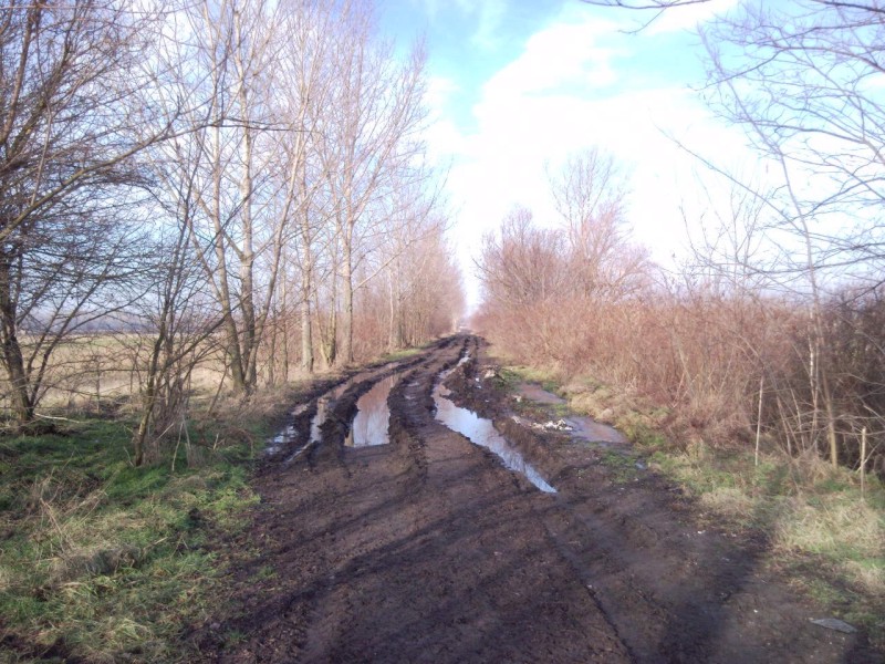 Dóc magasságában le akartam menni a gátról, de a földút annyira össze volt vágva a kedves parasztok 30millás traktorai által, hogy meg sem próbáltam. Tolni nem akartam 4km-en keresztül. Pedig kinéztem az Alföldi Kéktúra útvonalának egy jó erdei szakaszát amit végig akartam nyomni. Na majd legközelebb.